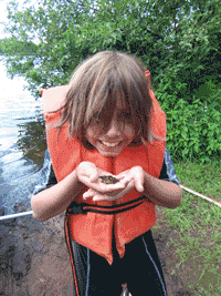 Maggie and Lily found a cool frog